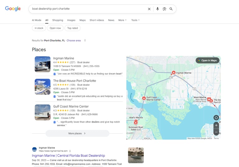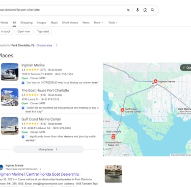 Along with implementing the Inventory Management and Client Management software (Marine Tool's Dealership Tools), we consistently built organic SEO by creating deeper, boating and fishing-related content for their website. We linked to this content from social media, slowly increased user impressions through search results, and instantly drove new buyers through paid advertising. As a result, Ingman achieved record sales.